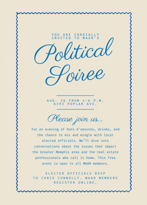 Please join us in the MAAR Education Center for hors d'oeuvres, drinks and conversation around topics that impact the Greater Memphis area and its real estate professionals. This event is free and open to all MAAR members. We hope to see you there!