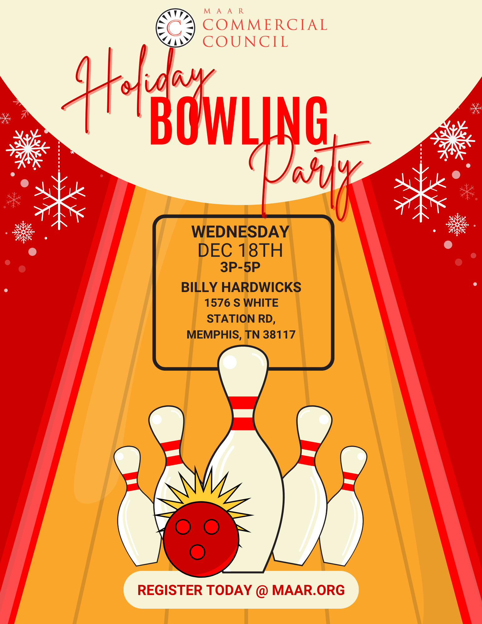 Roll into the holiday season and strike up great conversation at the Commercial Council's Holiday Bowling Party at Billy Hardwick's All Star Lanes! Registration is free and all members are encouraged to attend.