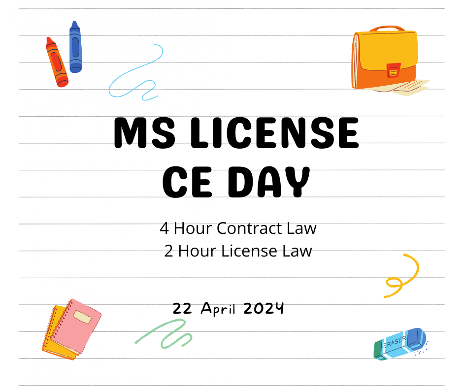 This class is part of the Mississippi License Day and fulfills the MREC requirement for License Law. Registration is required.
